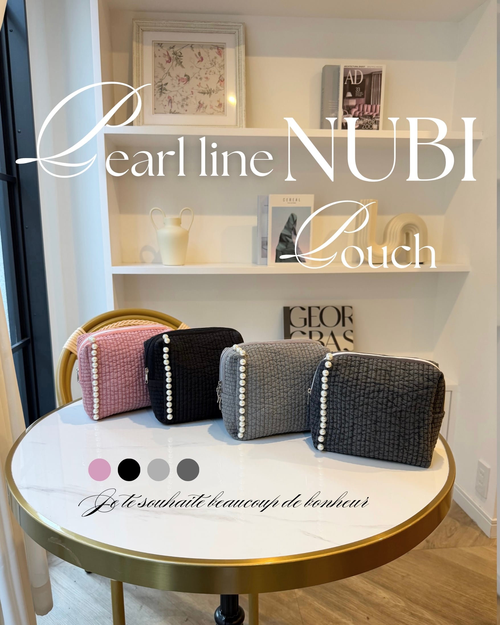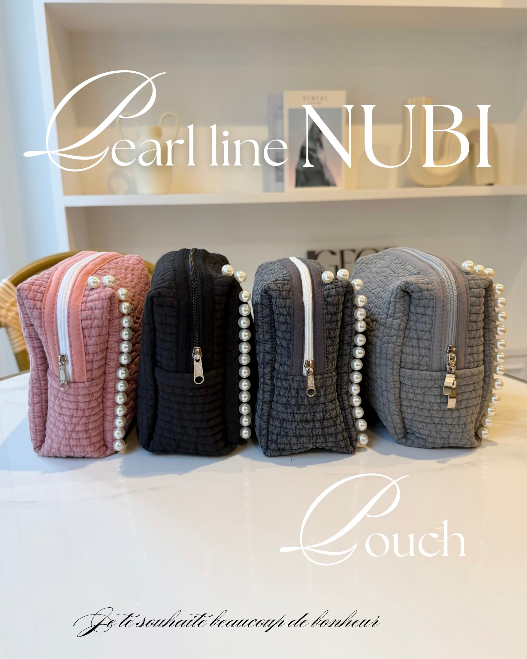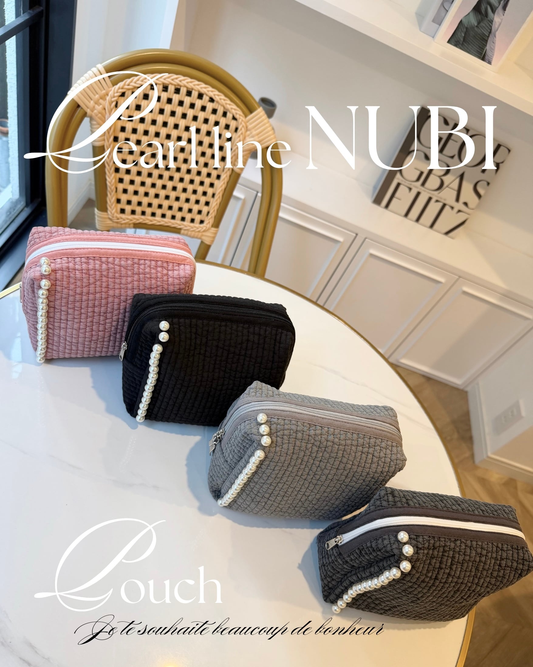 新作パールラインデザインとお揃いのポーチが入荷。